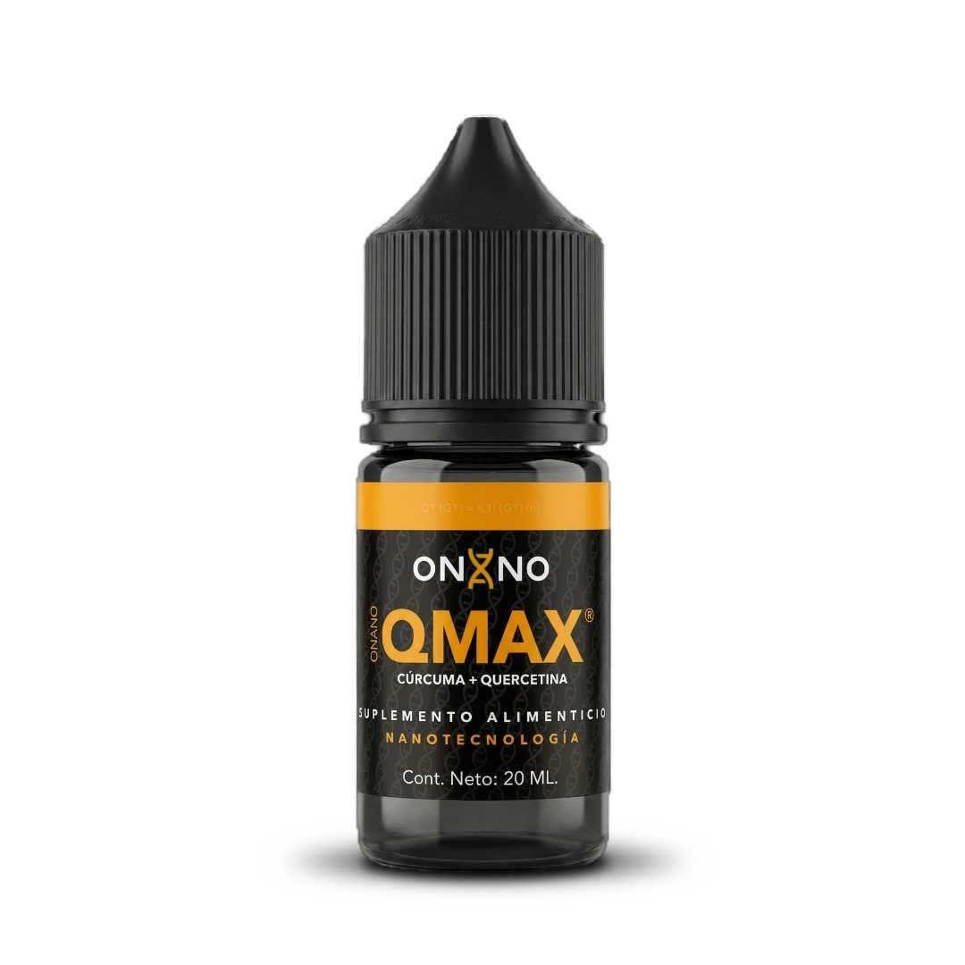 QMAX de ONANO® es una formulación avanzada que combina cúrcuma (curcumina) y quercetina en presentación líquida de alta biodisponibilidad. Dos de los compuestos naturales más estudiados se unen en una sinergia científica diseñada para combatir la inflamación y el estrés oxidativo desde múltiples frentes.